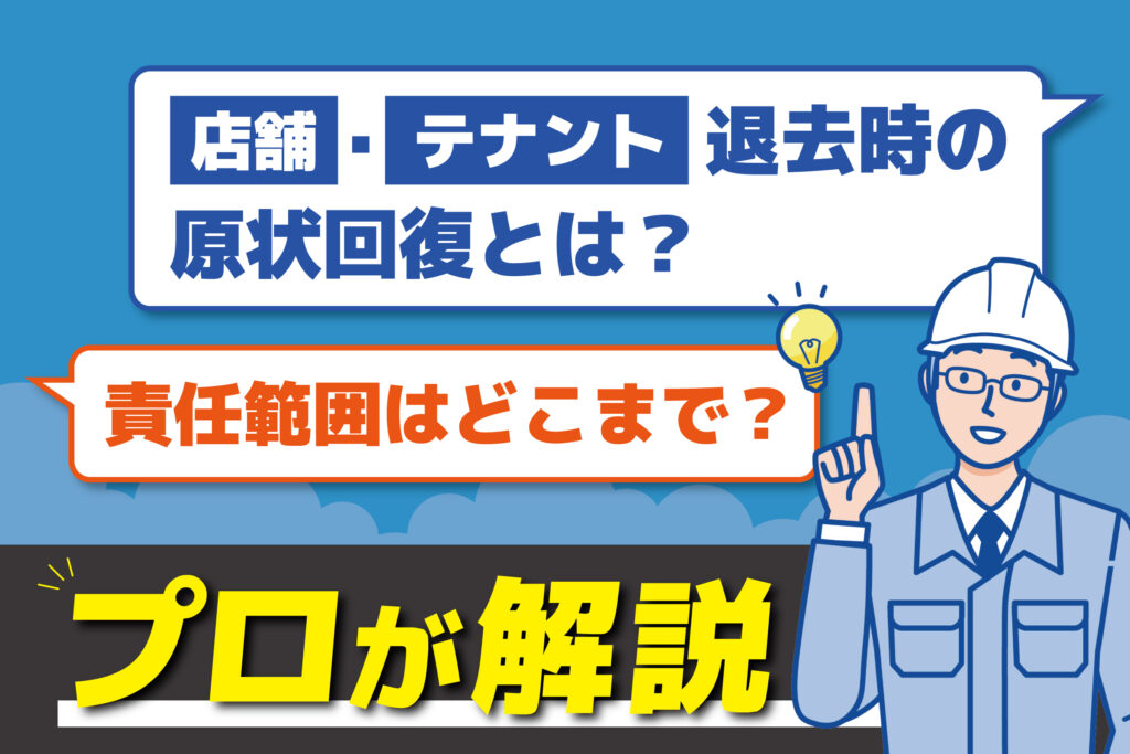 賃貸物件を借りた当初の状態に戻す工事のことです。店舗やオフィスを退去する際に、契約に基づき壁・床・天井・設備などを元の状態に戻す必要があります。