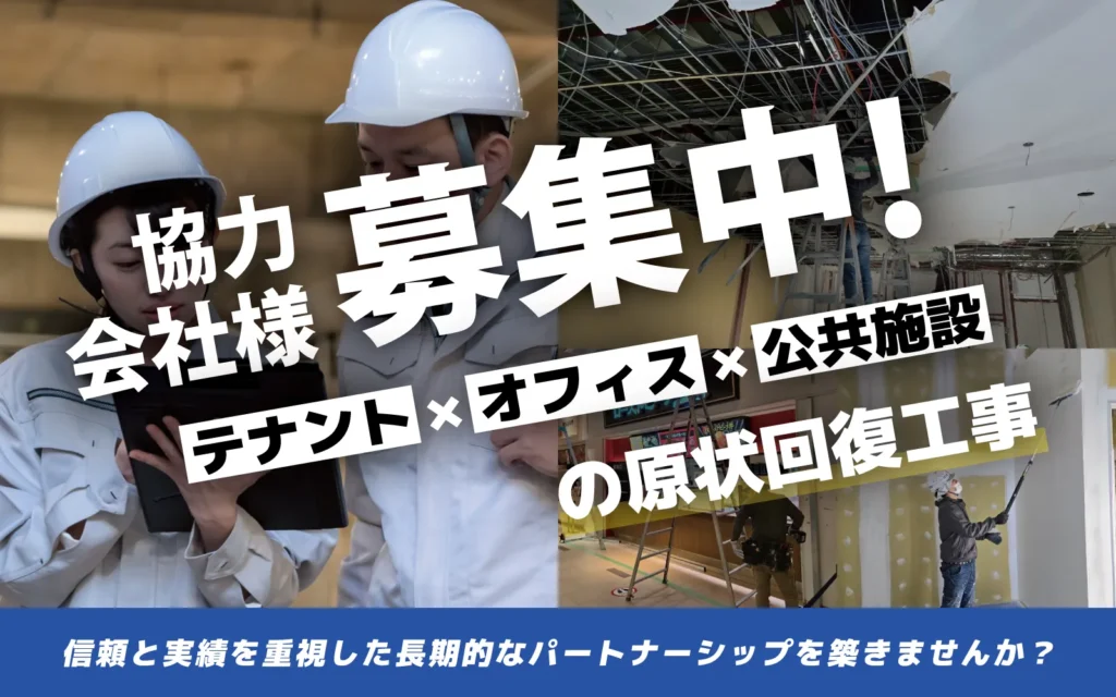 当社は、テナント・オフィス・公共施設専門の原状回復工事会社です。創業以来の経験と専門知識をもとに、安心・安全・一気通貫の施工をご提供。