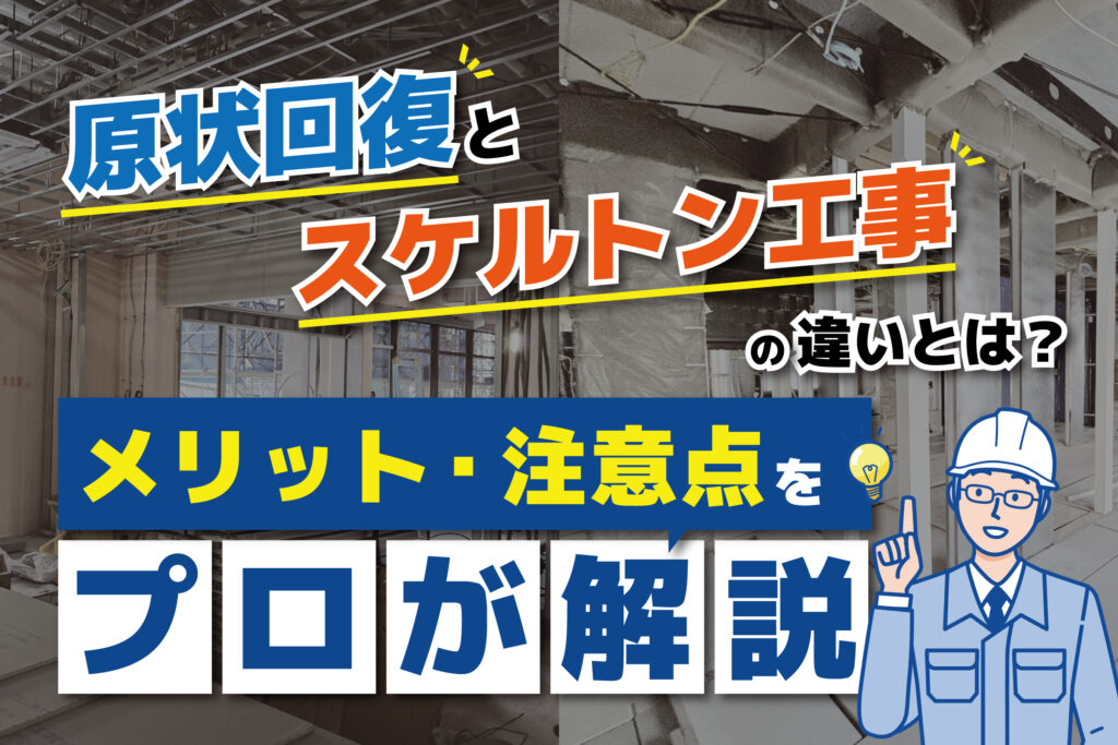 また、原状回復の範囲は「スケルトン工事」「居抜き」など契約形態によっても異なります。スケルトン工事は費用負担が大きい一方で、居抜きであればコストを大幅に抑えることが可能です。ただし、居抜きはオーナーや管理会社の承認が必要で、必ずしも選べるとは限りません。